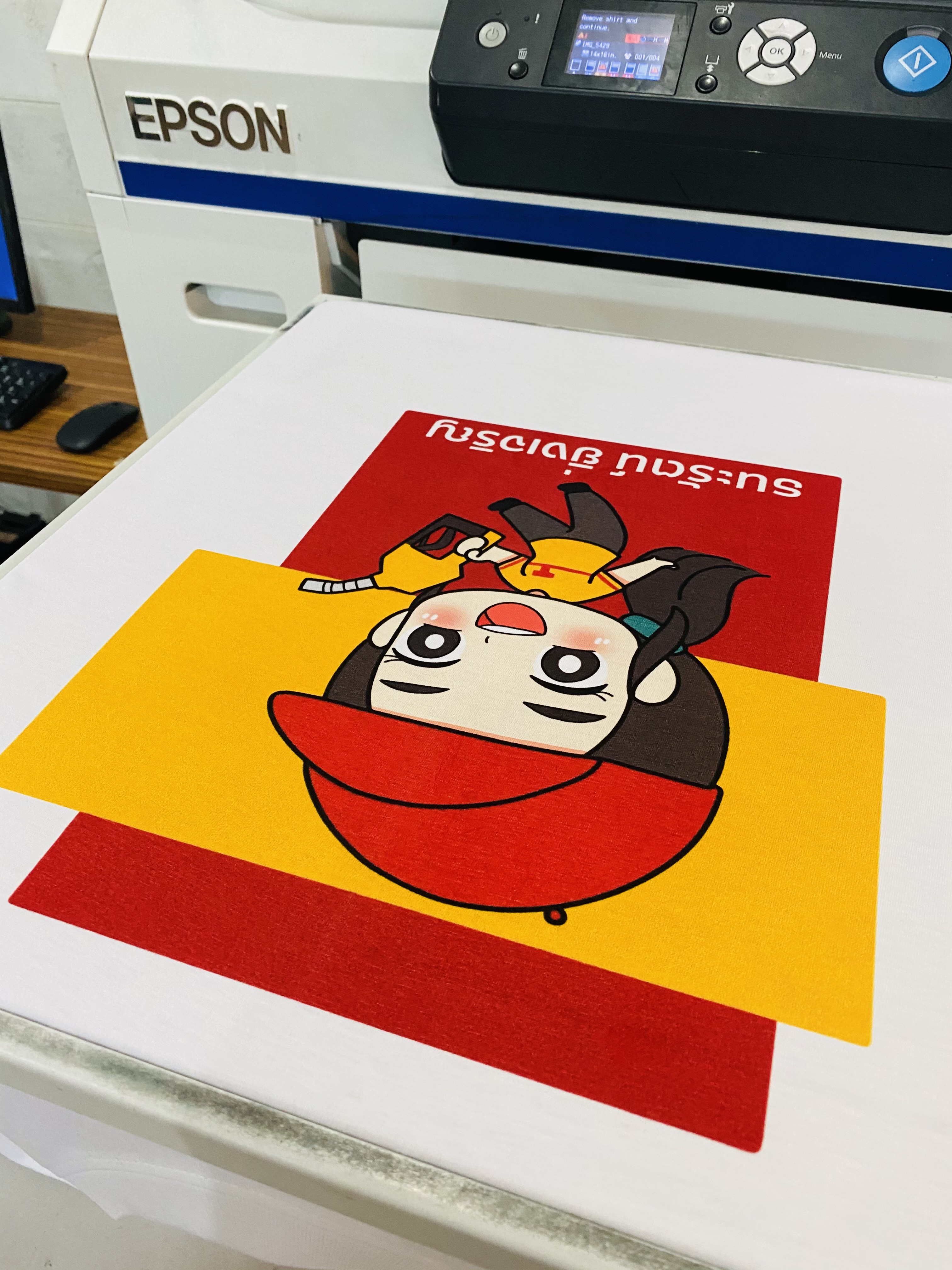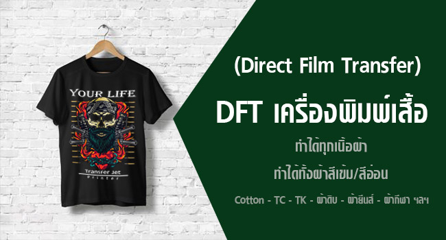 DTF คือ การพิมพ์สกรีนรูปลงบนแผ่นฟิล์มด้วยหมึกพิเศษ และนำไปรีดลงเสื้อยืด